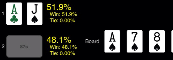 Scott: Best case we are a small dog. That means vs his entire range we are a huge dog. We are drawing to 4 outs at best…
